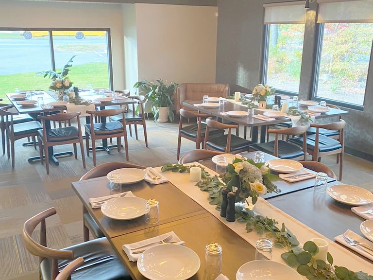 Our dining rooms welcome your event: The East Room is perfect for groups of 12-24, while the Picasso Room seats up to 35 guests. Both rooms can be combined for a maximum of 65 guests. Use the contact form on the main page to reach Michelle, our private event coordinator. Michelle answers inquiries Wednesday through Sunday.
